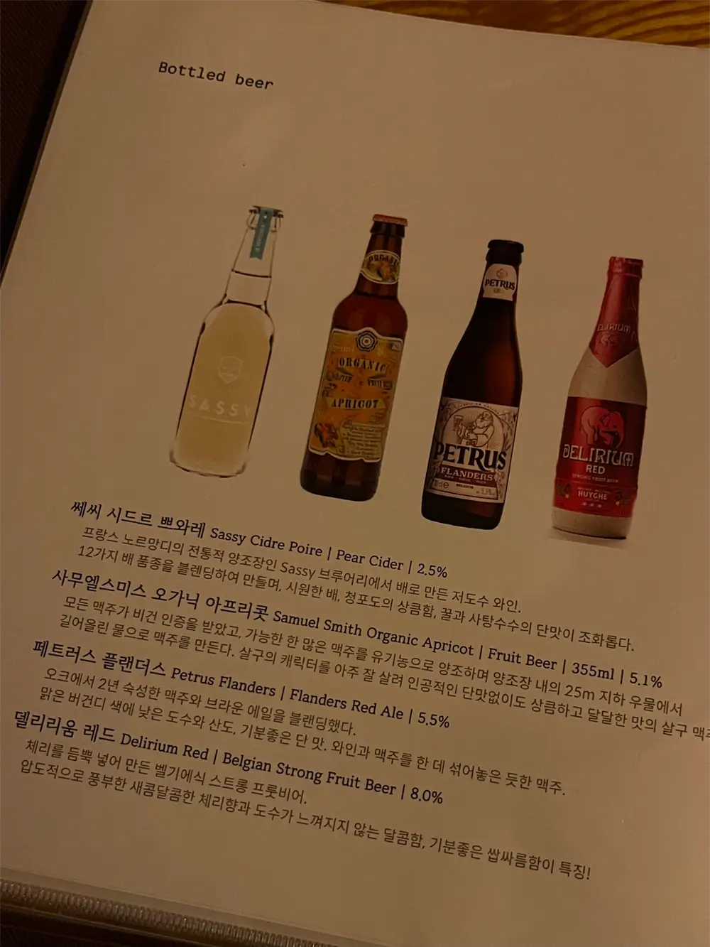 저는 이 중에서 밝은밤, 르 쁘띠 베레, 쎄씨 시드르 세 가지를 마셔봤습니다.