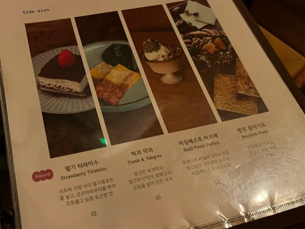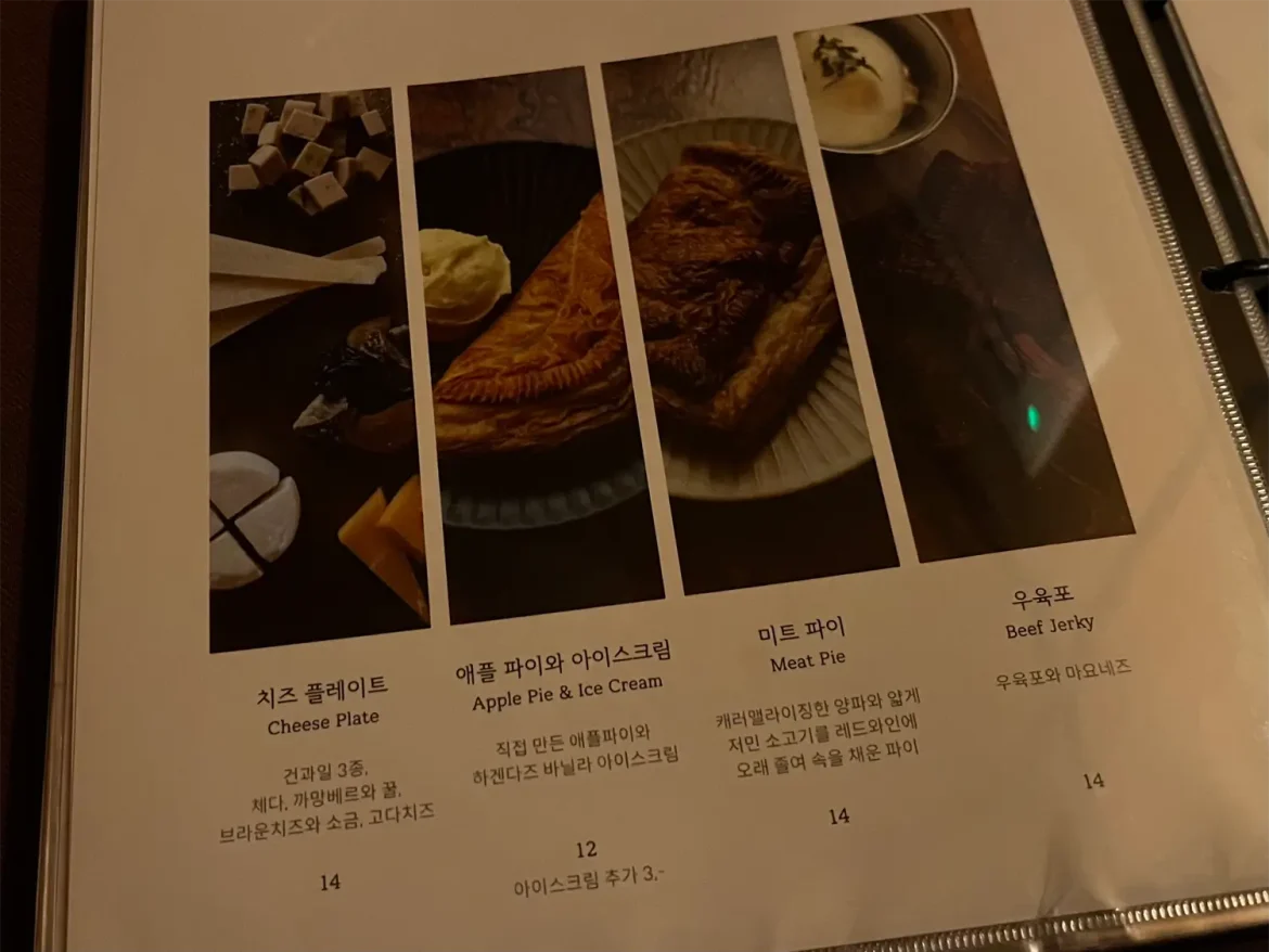 안주로는 딸기 티라미수, 플레이트, 파르페, 미트파이 등 곁들일 메뉴가 꽤 다양했어요.