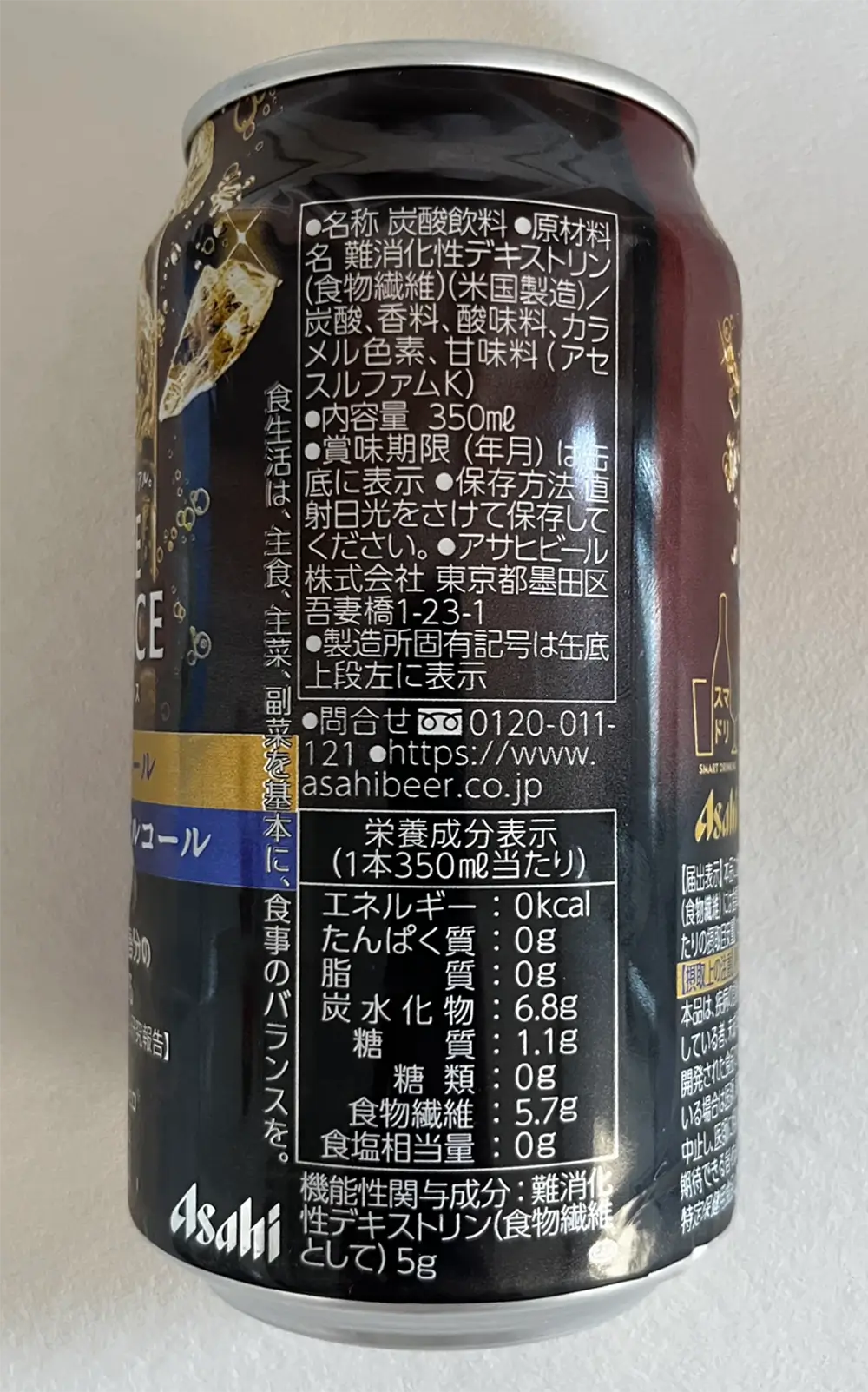 난소화성 덱스트린(식이섬유), 탄산, 향료, 산미료, 캐러멜 색소, 감미료(아세설팜K)