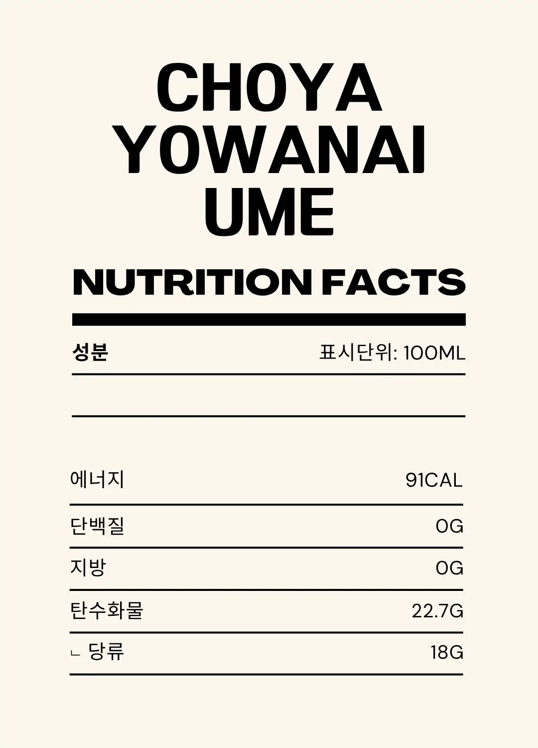 ‘요와나이 우메슈’는 매실주 하면 떠오르는 명가, 초야(CHOYA)가 만든 논알콜 제품이에요.